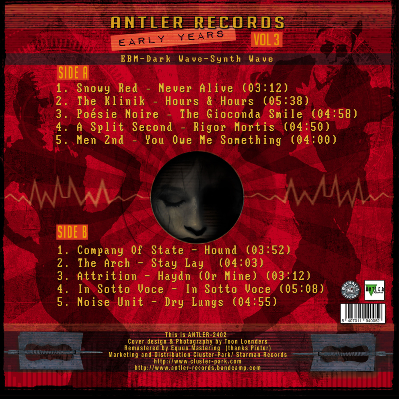 The first compilations 'Early Years Vol. 1 and Vol 2” were received with great enthusiasm and flew out the door. Now there is already Vol. 3 with again carefully chosen gems from the rich Antler archives with carefully selected recordings of influential bands such as The Klinik, Snowy Red and A Split Second.